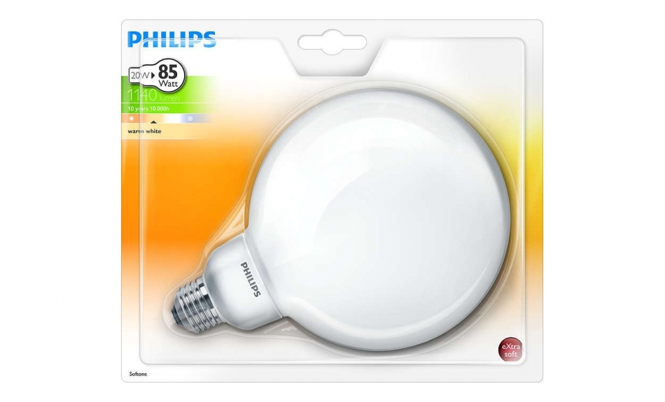 Philips Świetlówka kulista Softone 20W E27 WW G120